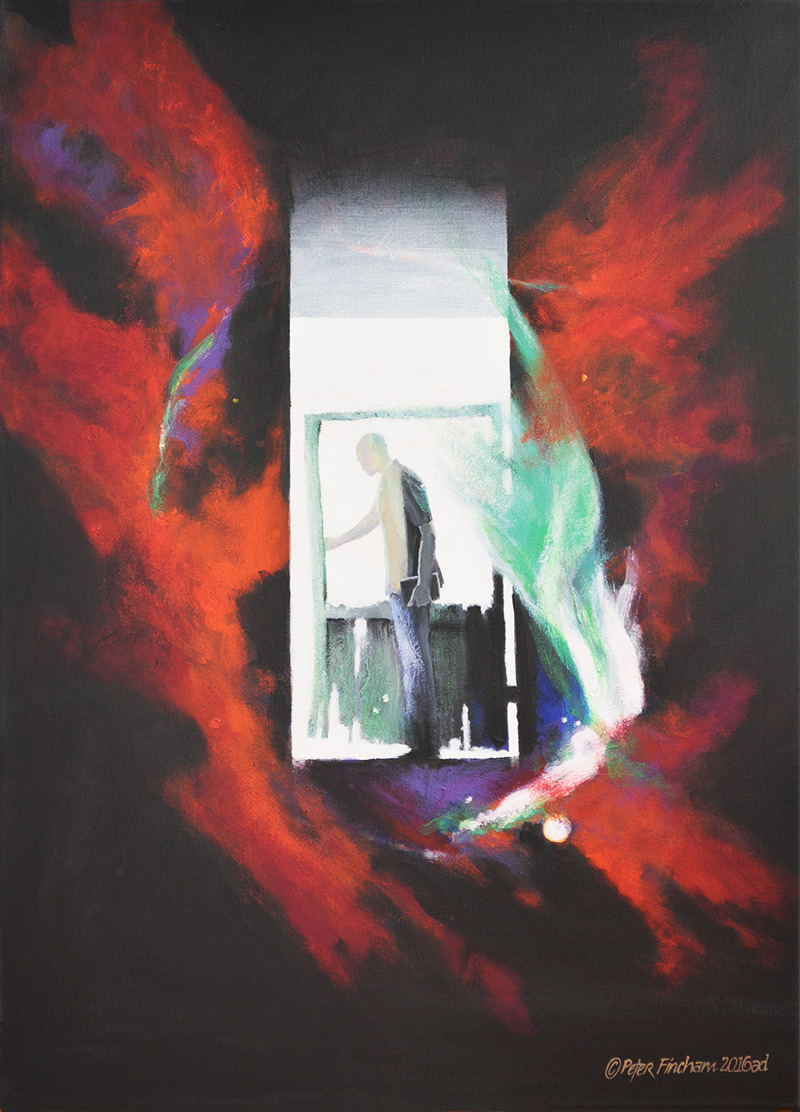 This painting visualises the analysis of a distant supernova. Some astronomers agree that they currently know only about 1% – 10% of what is actually out there in our own universe.